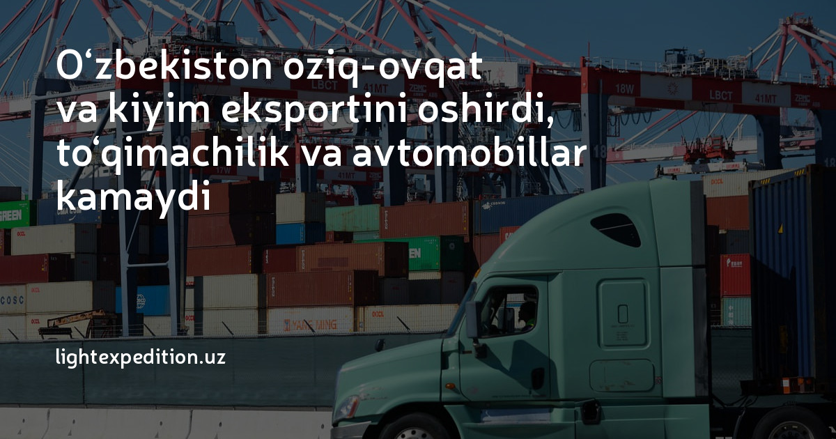 O‘zbekiston oziq-ovqat va kiyim eksportini oshirdi, to‘qimachilik va avtomobillar kamaydi